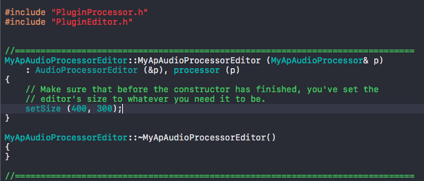 在PluginEditor中要编辑的方法是构造方法,paint() 和resize()方法