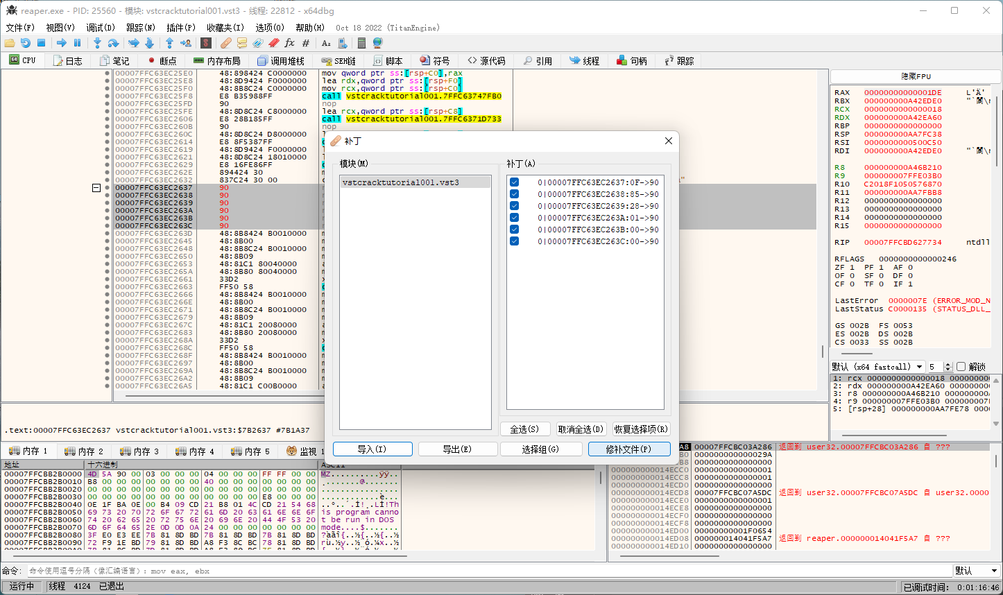 (这里是把内存中修改的地址转换成了.vst3文件的文件偏移地址,然后把修改后的数据写进去,存为新的.vst3文件)