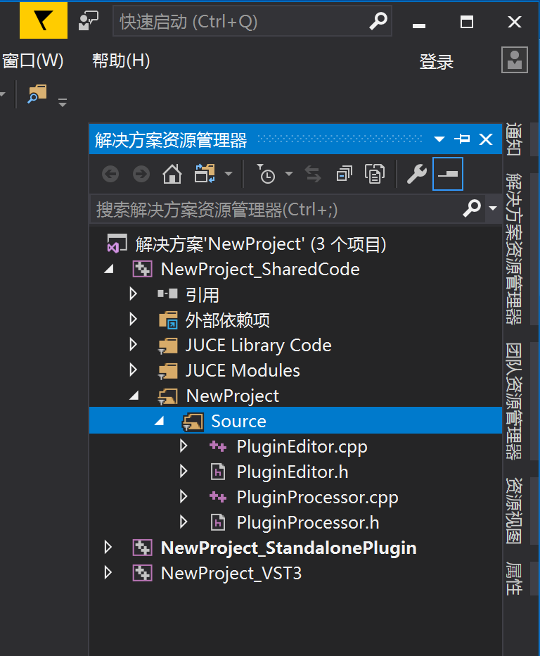 这个Source文件夹里的四个文件是是框架自动生成的代码,它们就是整个音频插件的框架。