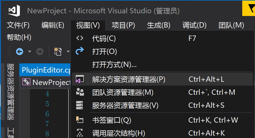 如果你的visual studio里没有这个“解决方案资源管理器”,就要通过 点击视图->解决方案资源管理器 来显示它
