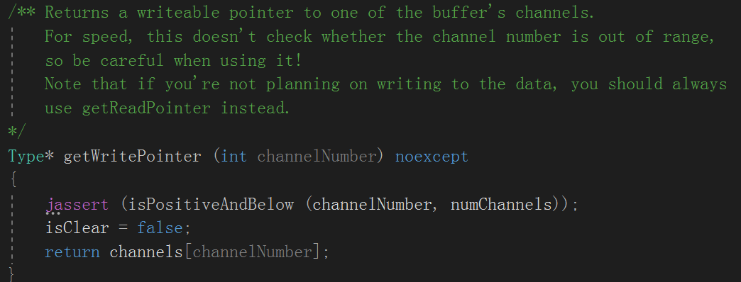 2. float* channelL = buffer.getWritePointer(0) 之后为何可以channelL[sample] ?