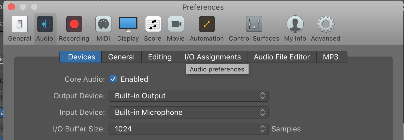 [Logic Pro X 上的 Buffer Size 设置]