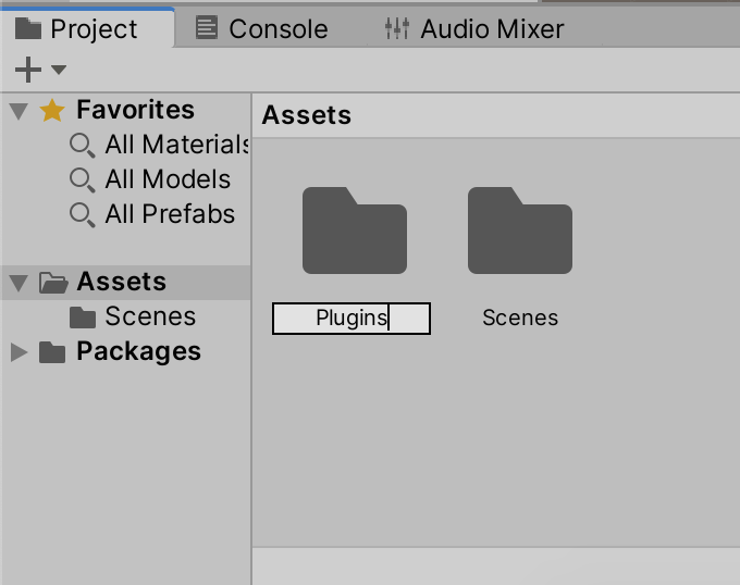 打开unity,Assets里面新建一个 Plugins 文件夹